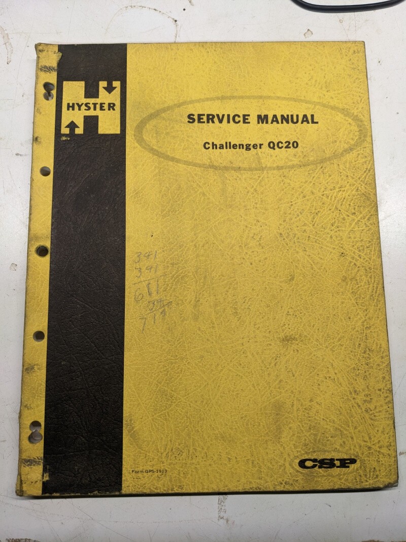 Hyster Service Repair Manual Fork Lift Truck Challenger Qc20 Gps-1913 1969
