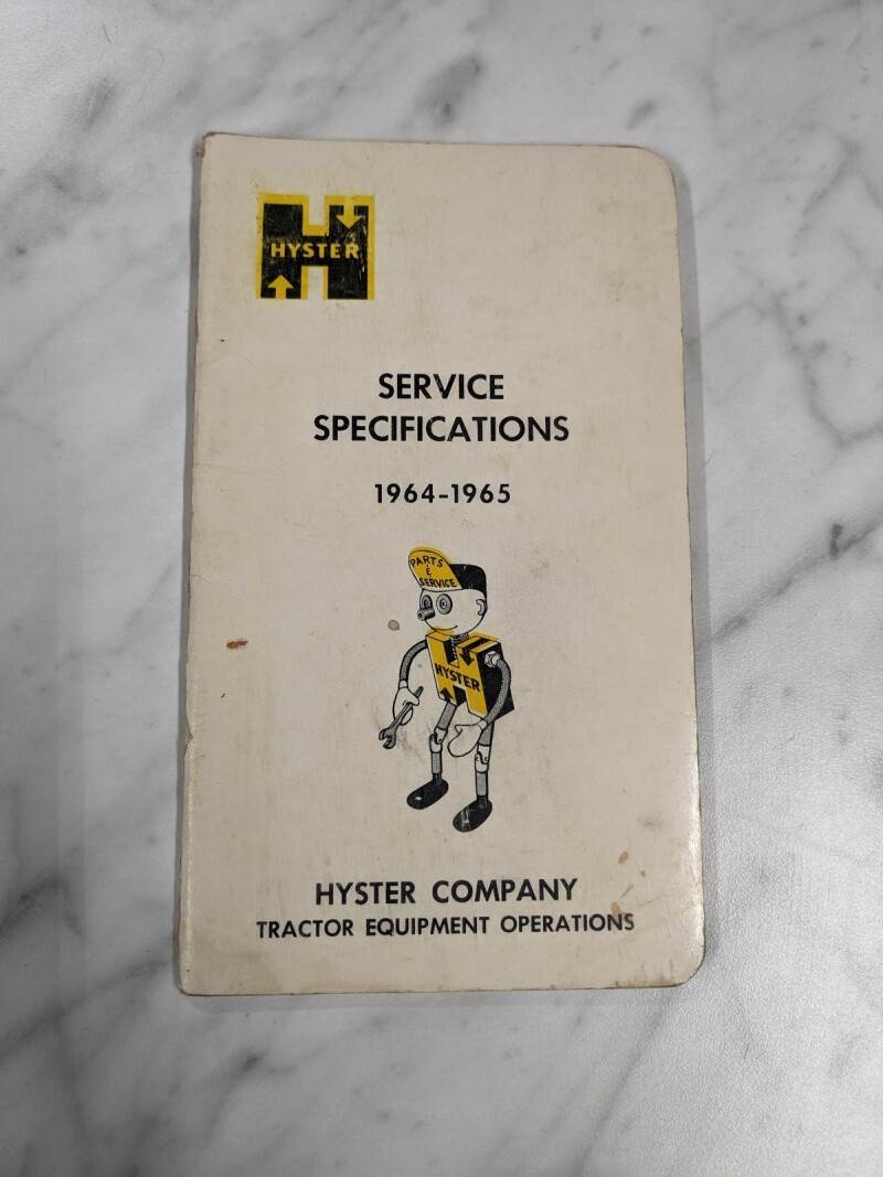Hyster Service Specifications Manual 1964-1965 Tractor Equipment Operations