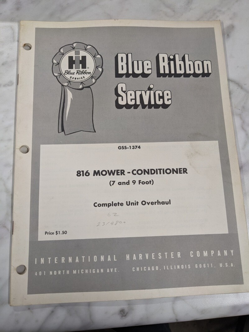Ih International Harvester Service Manual #816 Mower Conditioner Overhaul 1374