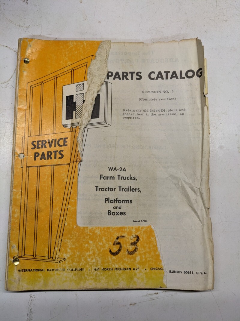 Ih International Wa-2A Parts List Catalog Manual Farm Trucks Trailers Shop Book