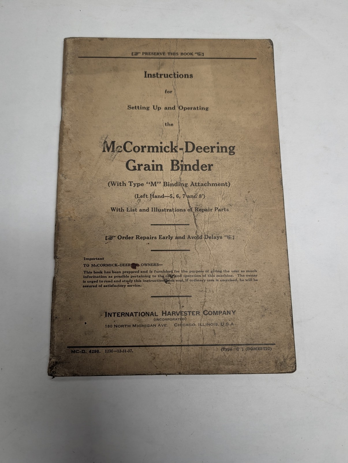 Ih Mccormick Deering Owners Instruction Manual Type ‘M’ Grain Binder 1937