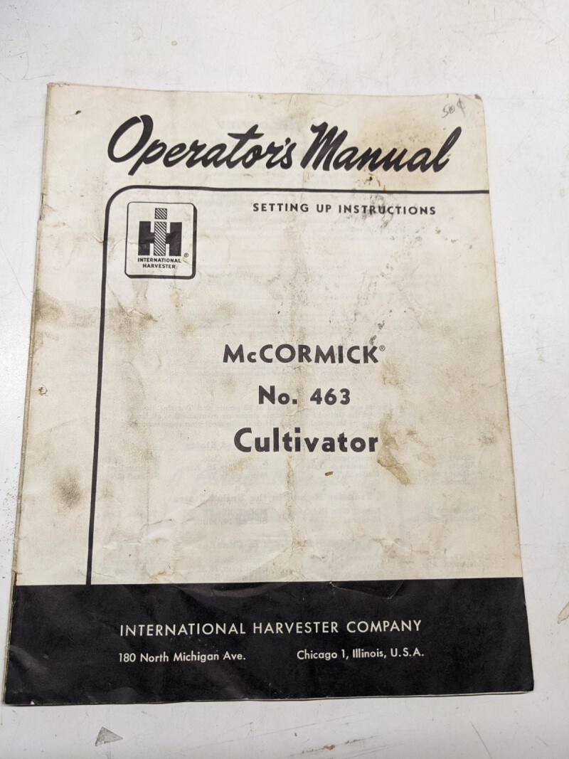 Ih Mccormick Operators Setup Instructions No 463 Cultivator 1960 Manual Owner