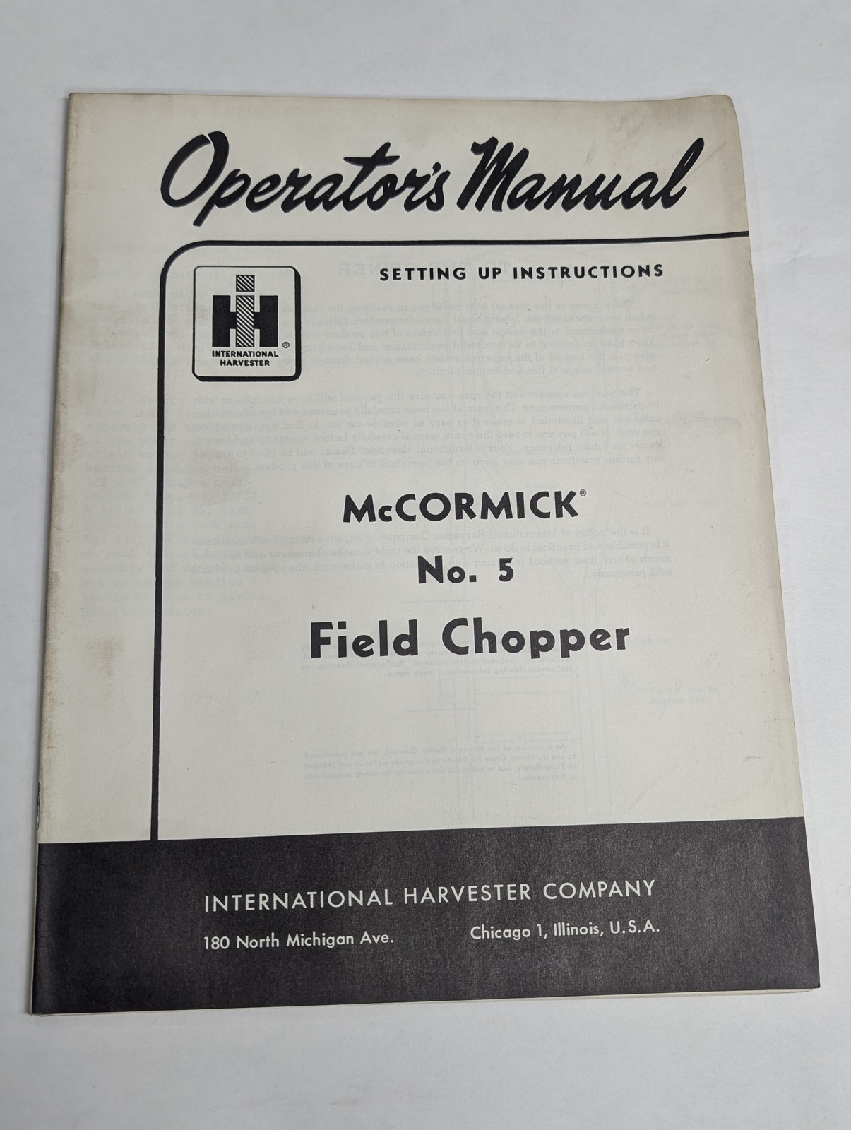 Ih Operator’S Manual Setting Up Instructions Mccormick 5 Field Chopper