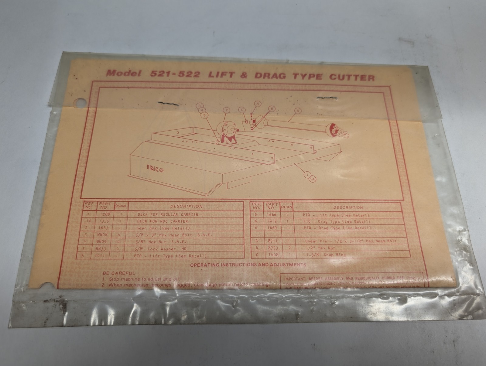 Imco Model 521 522 Lift Drag Type Cutter Instructions Parts List Catalog