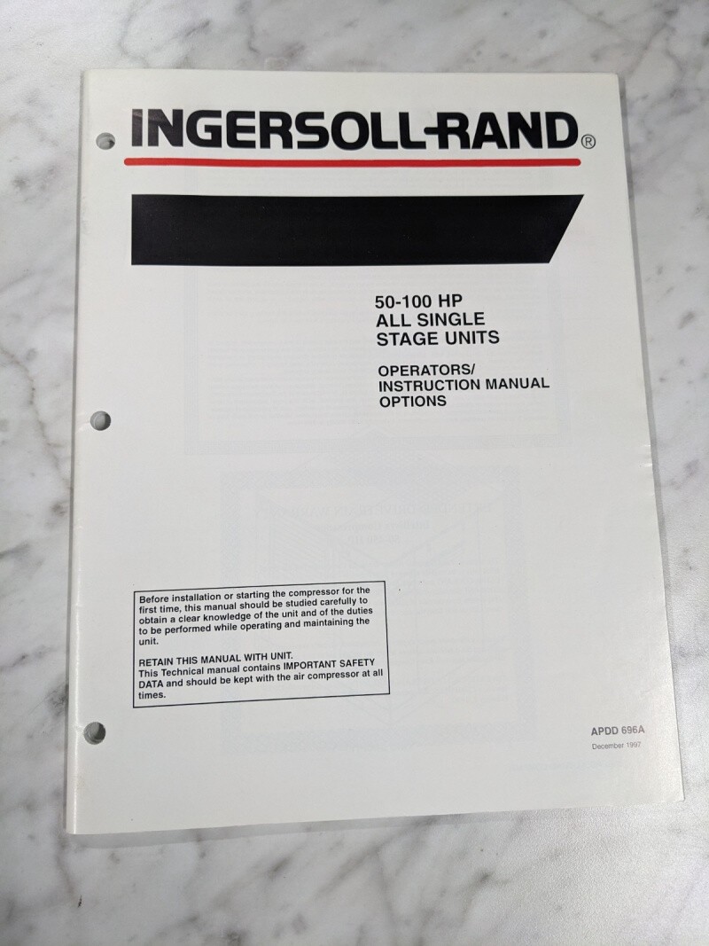 Ingersoll Rand Operator Instruction Service Manual 50-100 Hp Single Stage 1997
