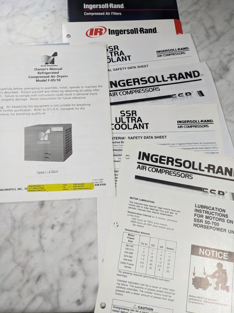 Ingersoll Rand Owners Manual Air Dryer F-05/10 & Sales Literature Brochures