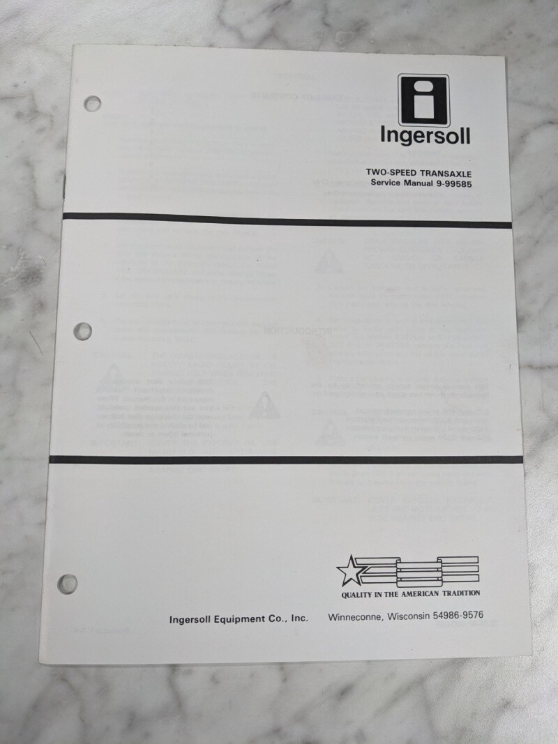 Ingersoll Service Tractor Manual 2 Speed Transaxle 9-99585