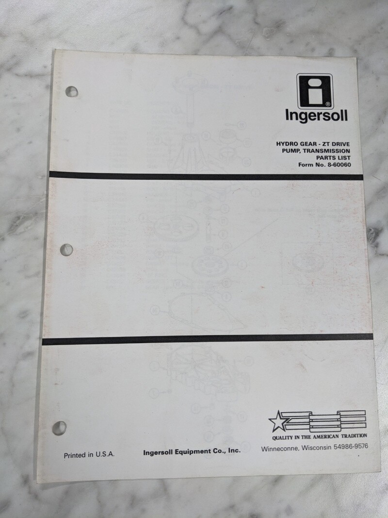 Ingersoll Tractor Manual Hydro Gear Zt Drive Pump Transmission Part List 8-60060