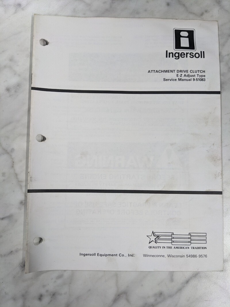 Ingersoll Tractor Service Manual Attachment Drive Clutch E-Z Adjust 9-51083