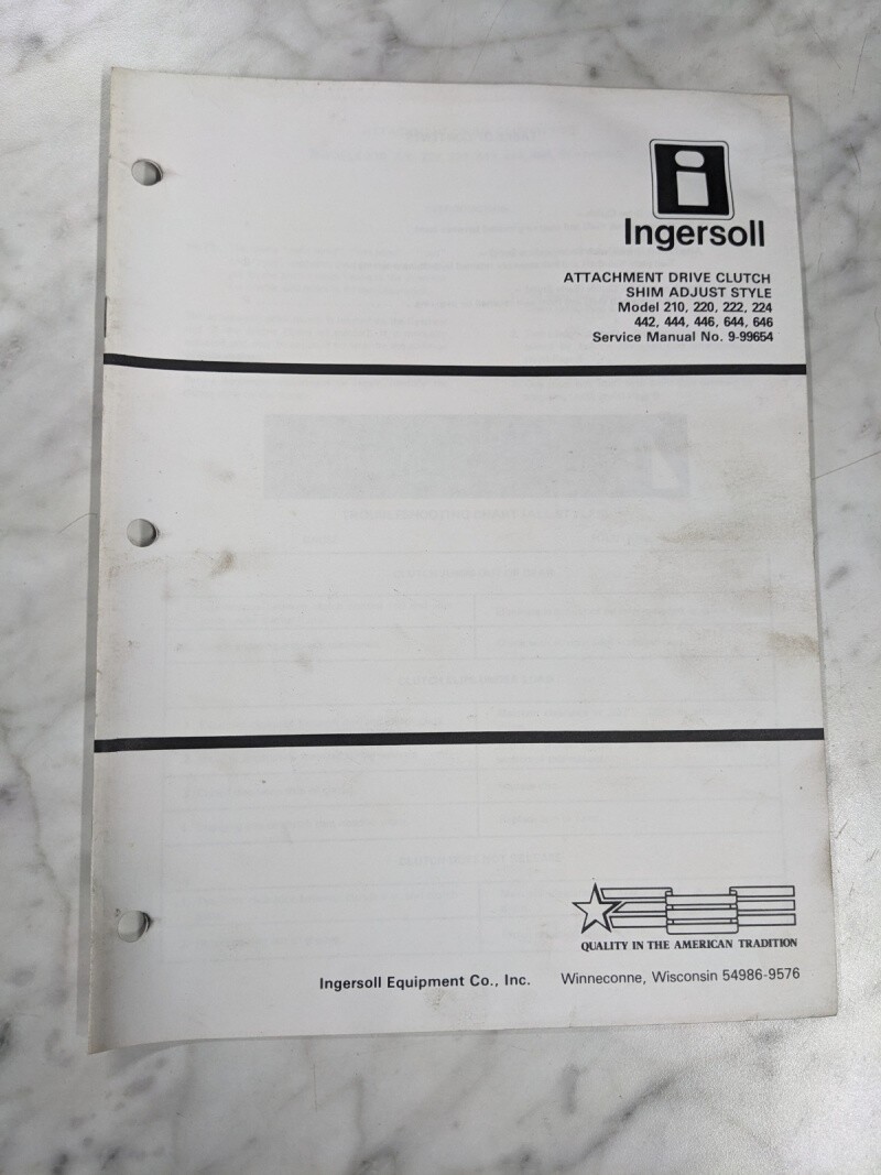 Ingersoll Tractor Service Manual Attachment Drive Clutch Shim Adjust 9-99654