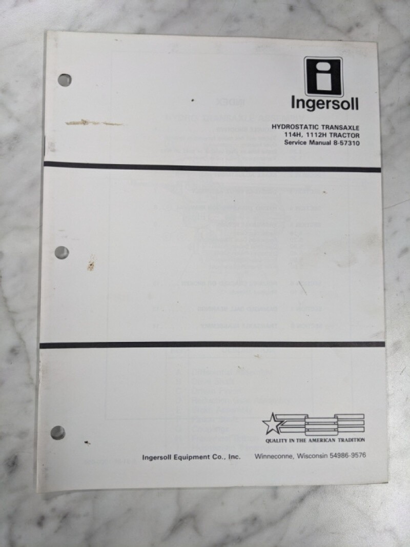 Ingersoll Tractor Service Manual Hydrostatic Transaxle 114H 1112H 8-57310