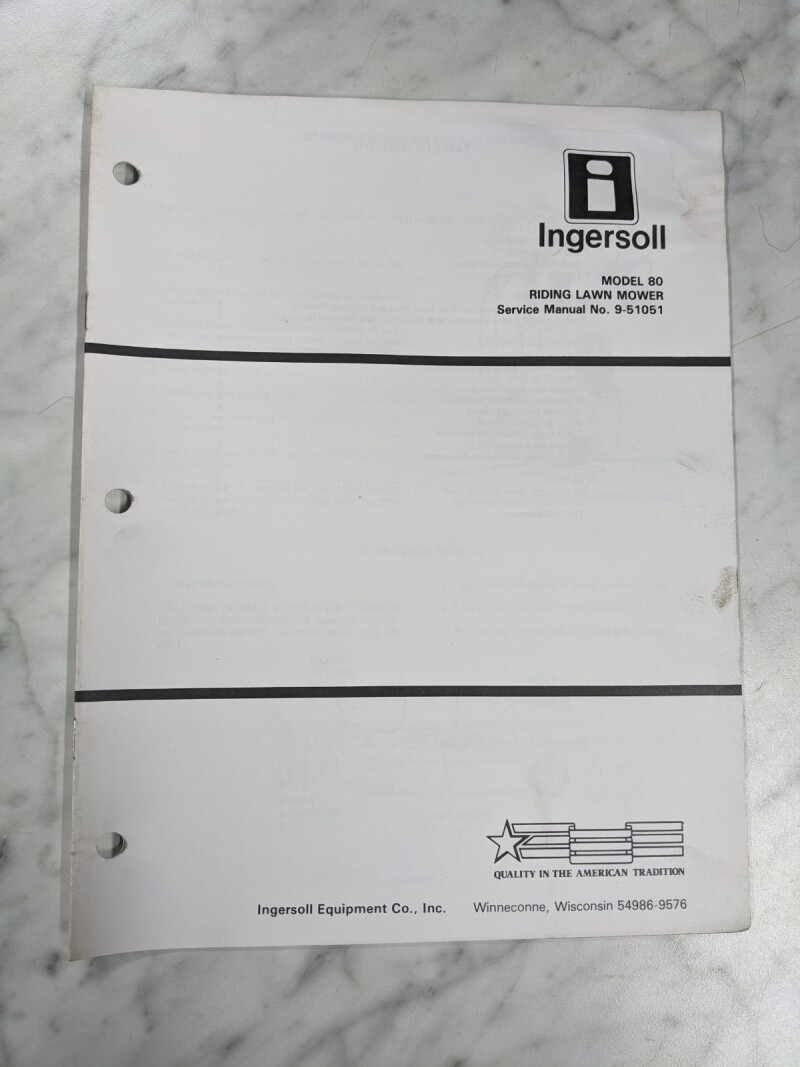 Ingersoll Tractor Service Manual Model 80 Riding Lawn Mower 9-51051