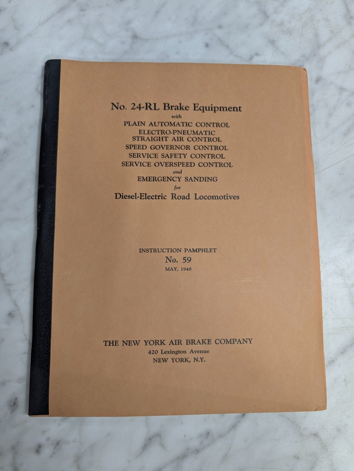 Instruction Manual Pamphlet New York Locomotive Air Brake Equipment #59 24-Rl