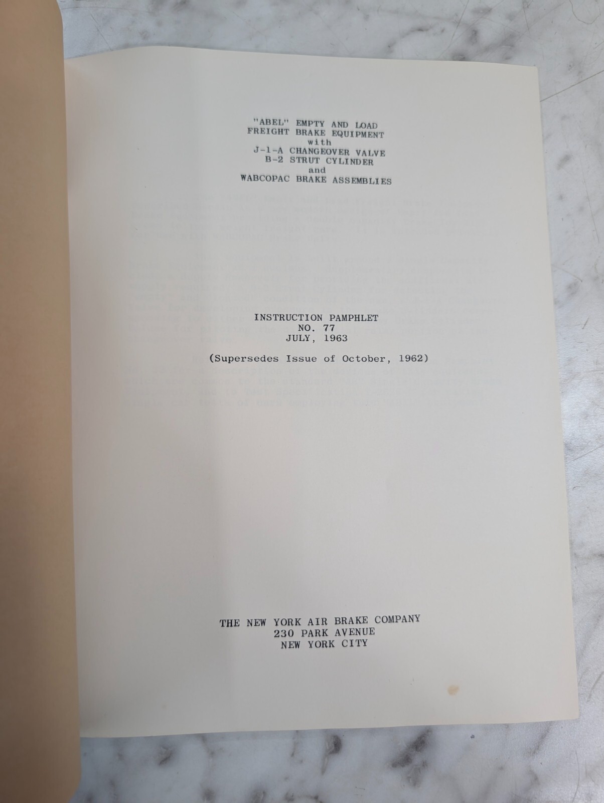 Instruction Manual Pamphlet New York Locomotive Freight Brake Equipment #77 Abel