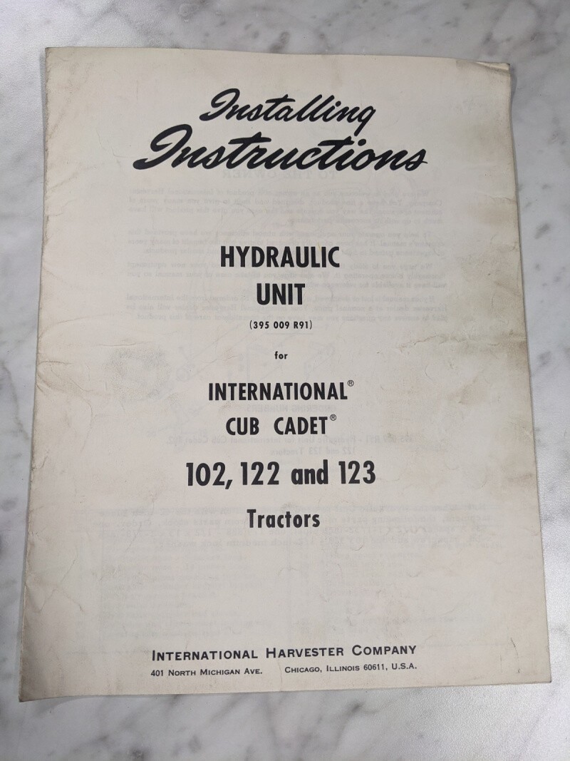 Intenrational Harvester Install Instruction Hydraulic Unit Cub Cadet 102 122 123