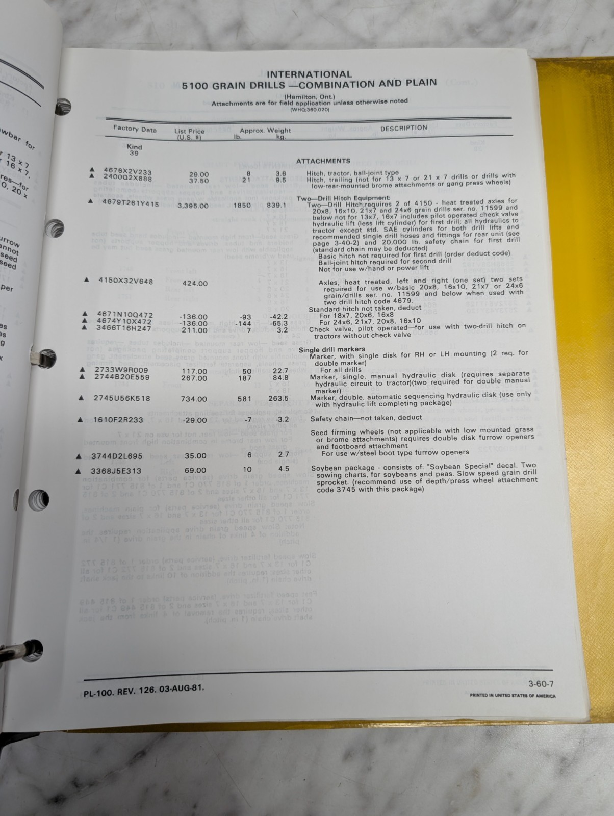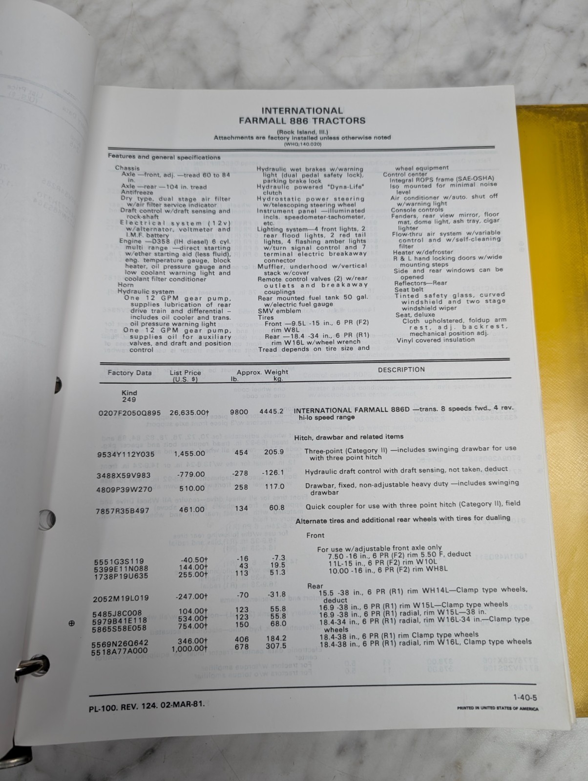 International Harvester Ih 1980 1981 Product Price List Dealer Manual Catalog Pl