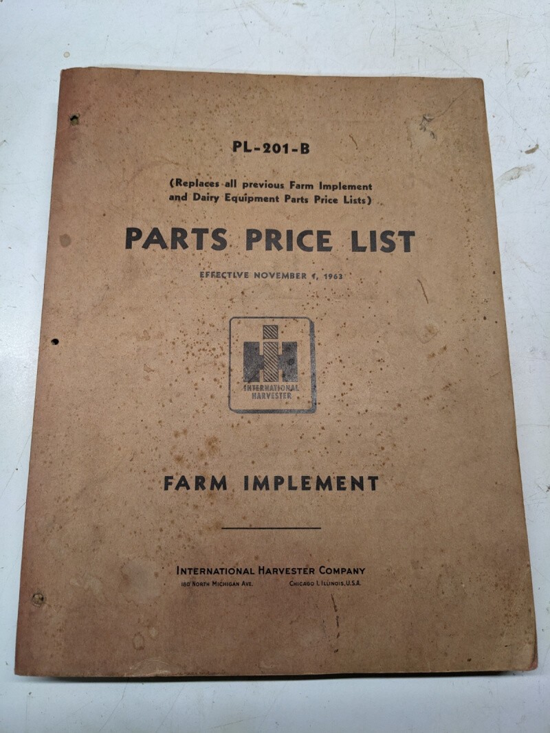 International Harvester Ih Farm Implement Pl-201-B Parts Price List 1963 Manual