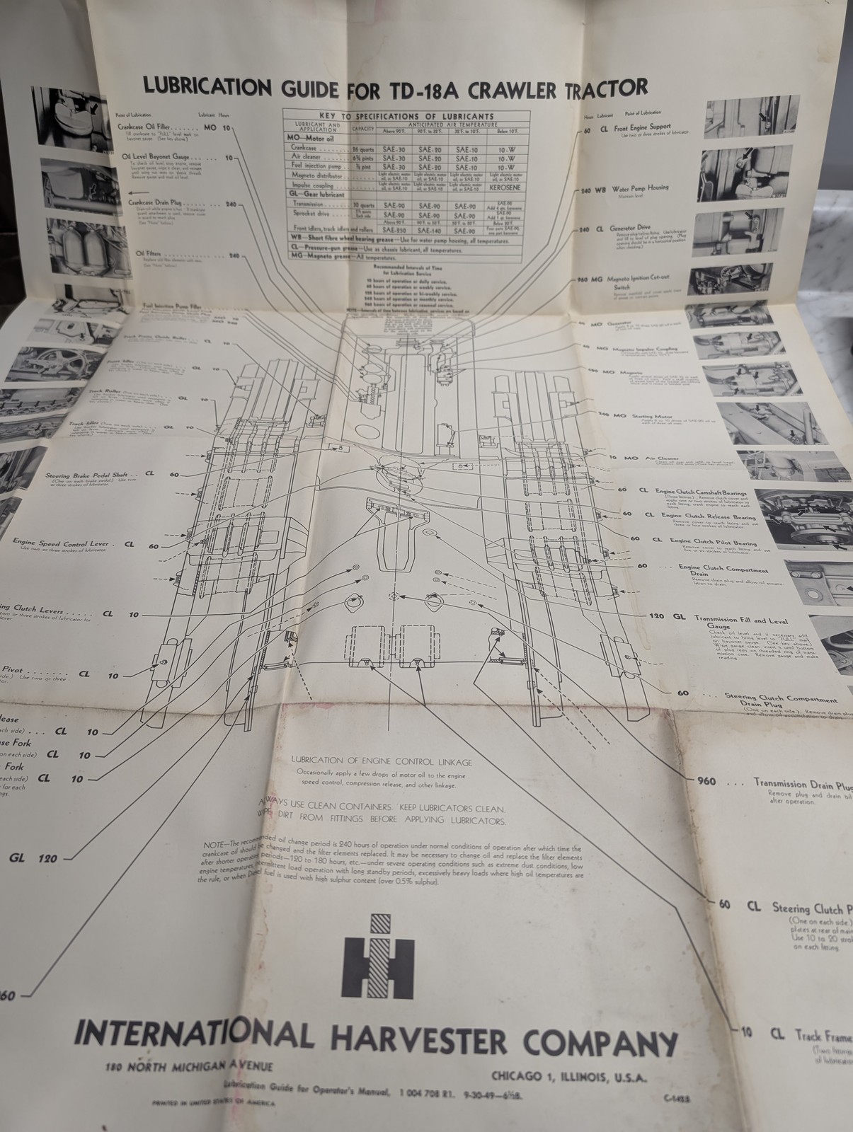 International Harvester Ih Lubrication Guide For Td-18A Crawler Tractor Foldout