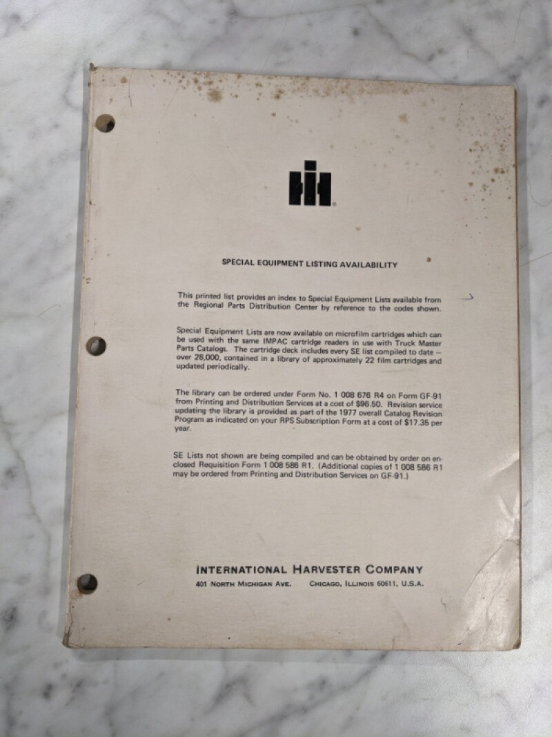 International Harvester Ih Marketing Special Equipment Listing Availability 1977