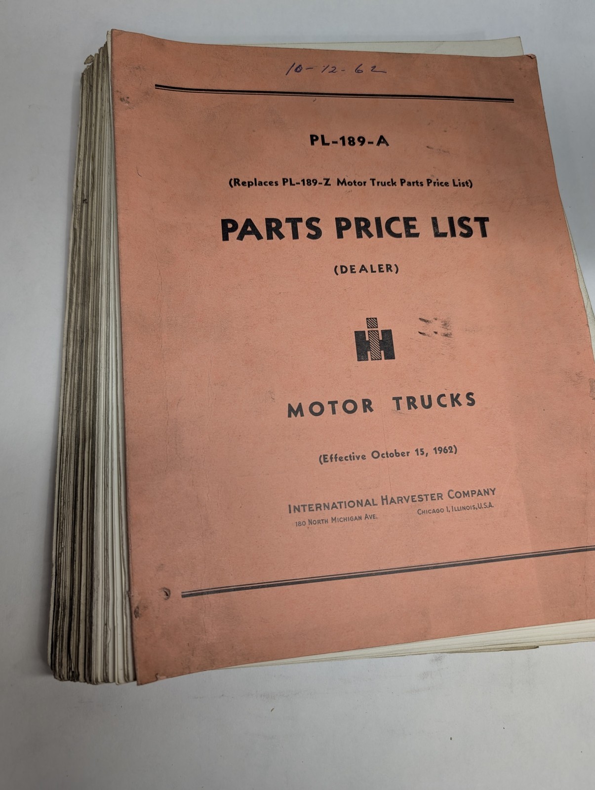 International Harvester Ih Motor Trucks Parts Price List Pl-189-A 1962 October