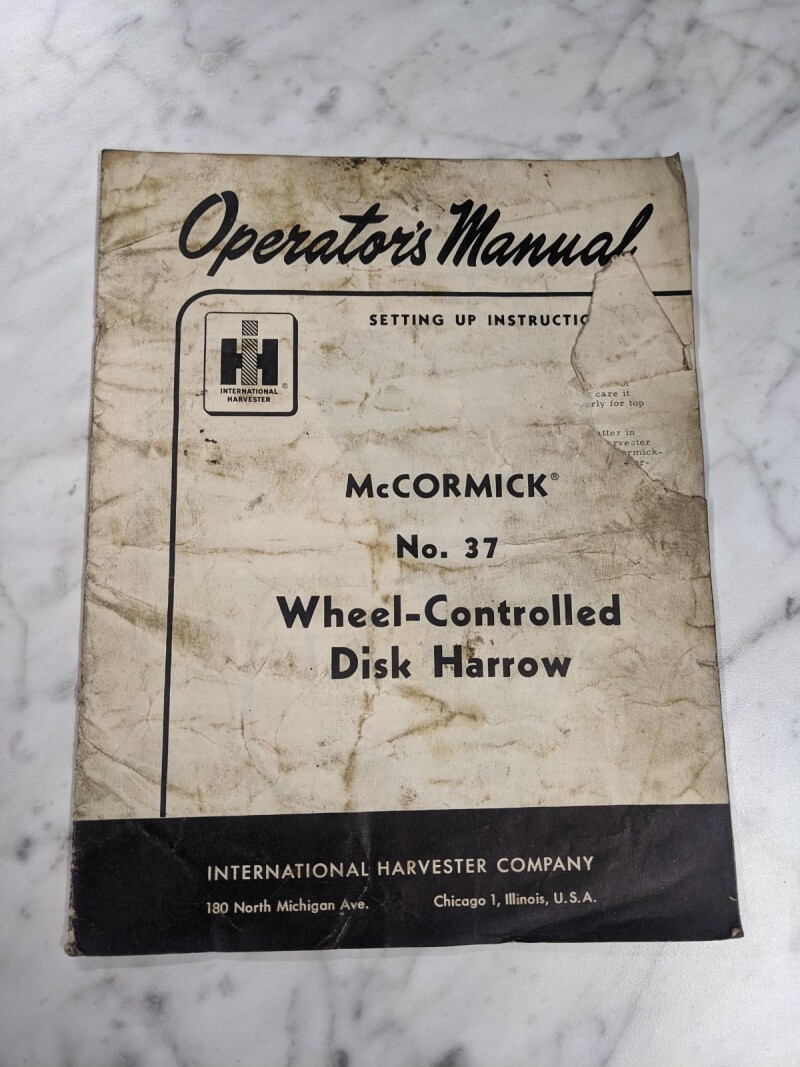 International Harvester Ih Operator Service Manual Mccormick 37 Disk Harrow 1957