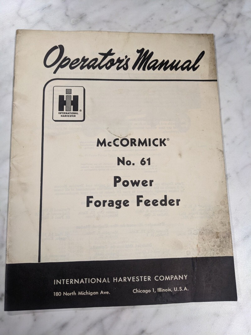 International Harvester Ih Operator Service Manual Mccormick #61 Power Feeder