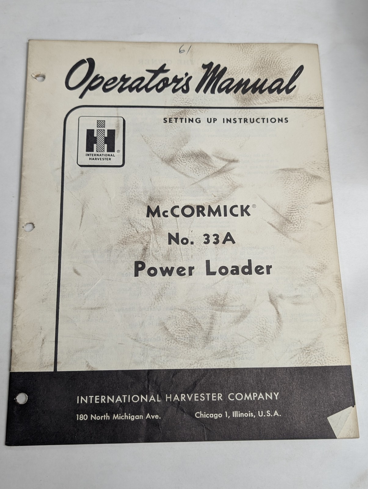 International Harvester Ih Operator’S Manual Mccormick #33A Power Loader