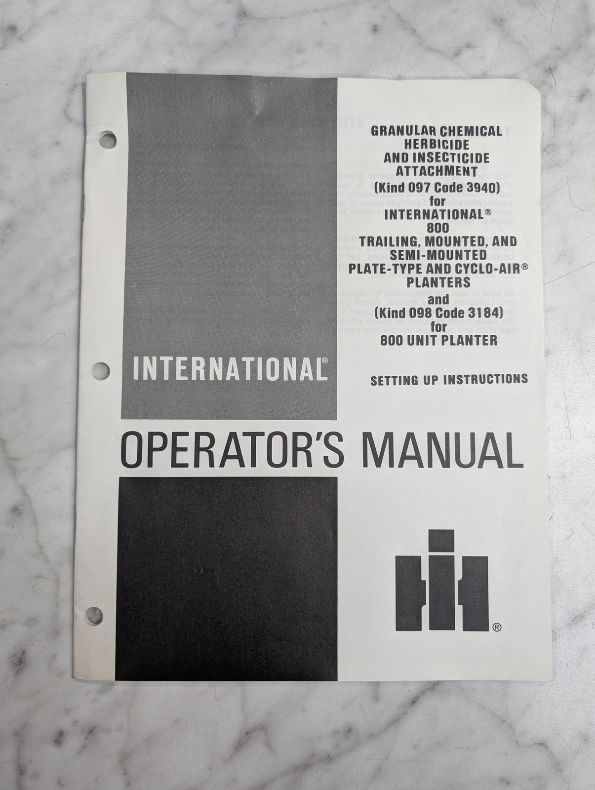 International Harvester Ih Operator’S Setup Manual Granular Chem 800 Unit