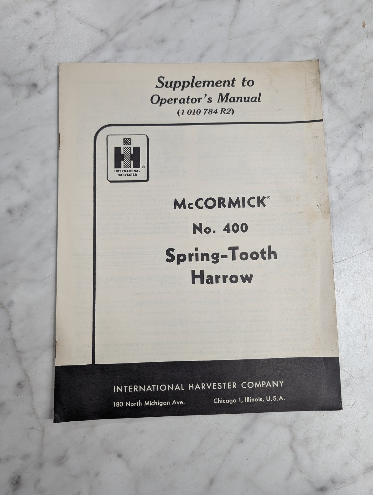 International Harvester Ih Operator’S Supplement Manual Mccormick 400 Harrow