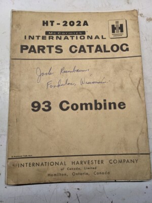 International Harvester Ih Parts Catalog List Book Manual 93 Combine Ht-202A