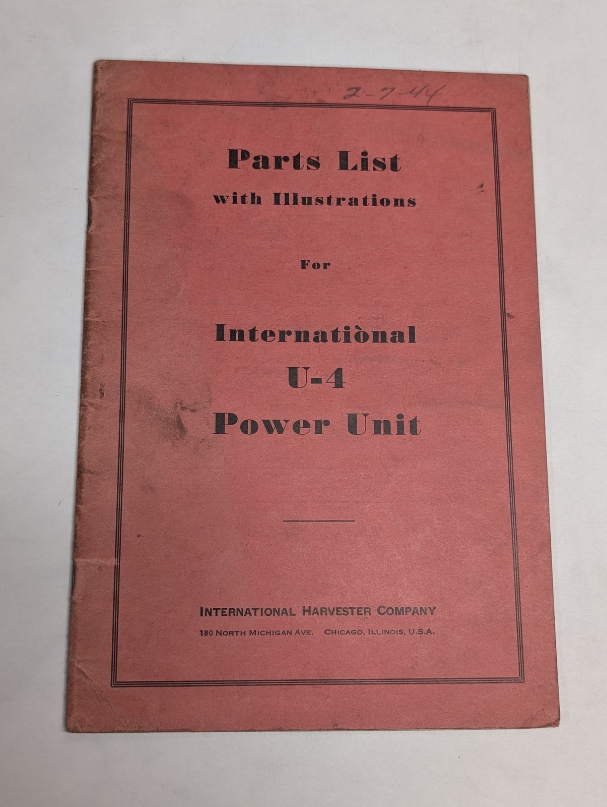 International Harvester Ih Parts List Catalog Manual 1942 U-4 Power Unit