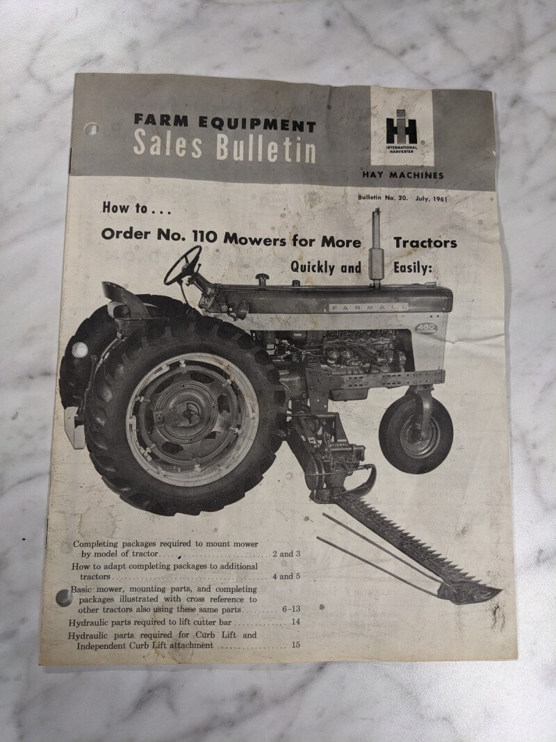International Harvester Ih Sales Dealer Bulletin #20 1961 110 Mower Tractor