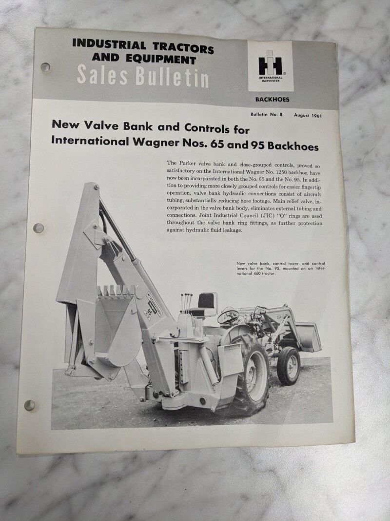 International Harvester Ih Sales Dealer Bulletin #8 1961 #65 95 Backhoes Valve