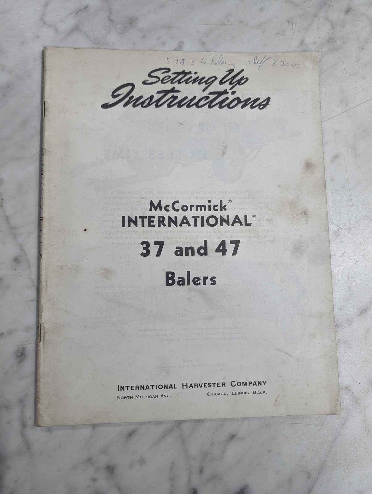 International Harvester Ih Setup Instruction Manual Mccormick 37 47 Balers