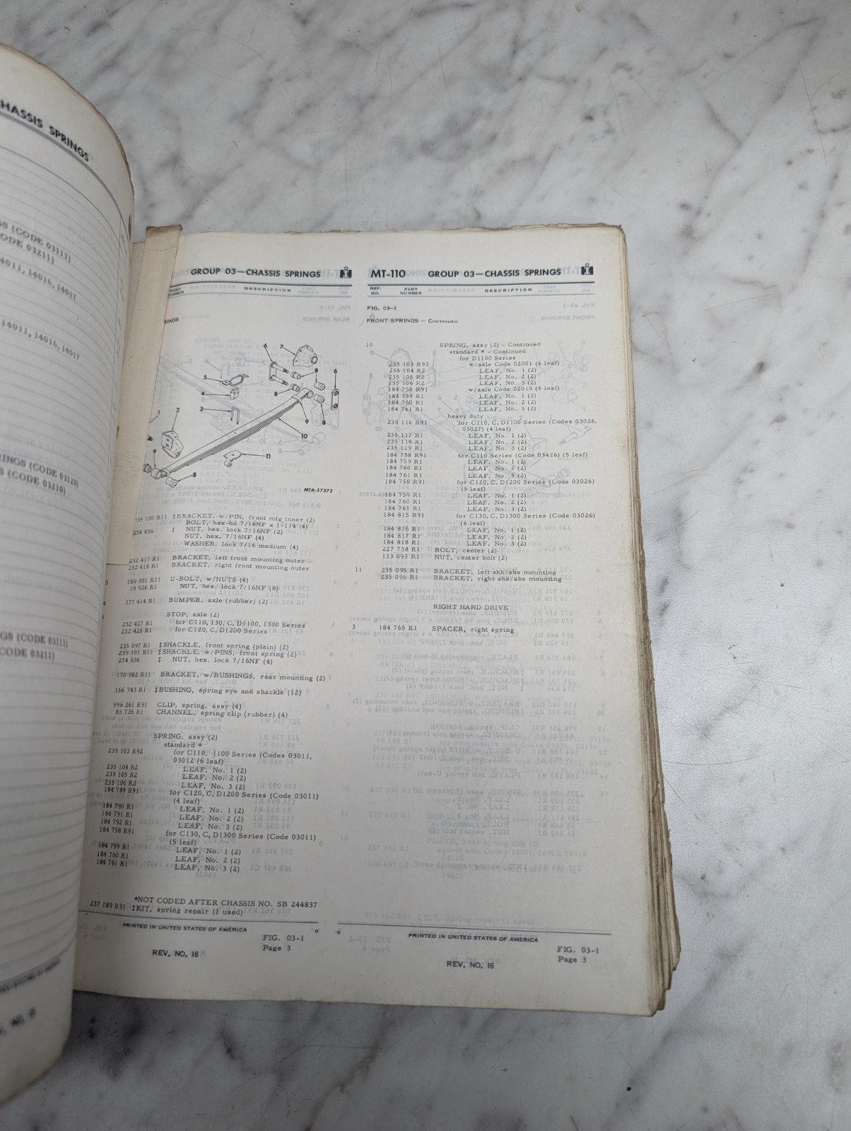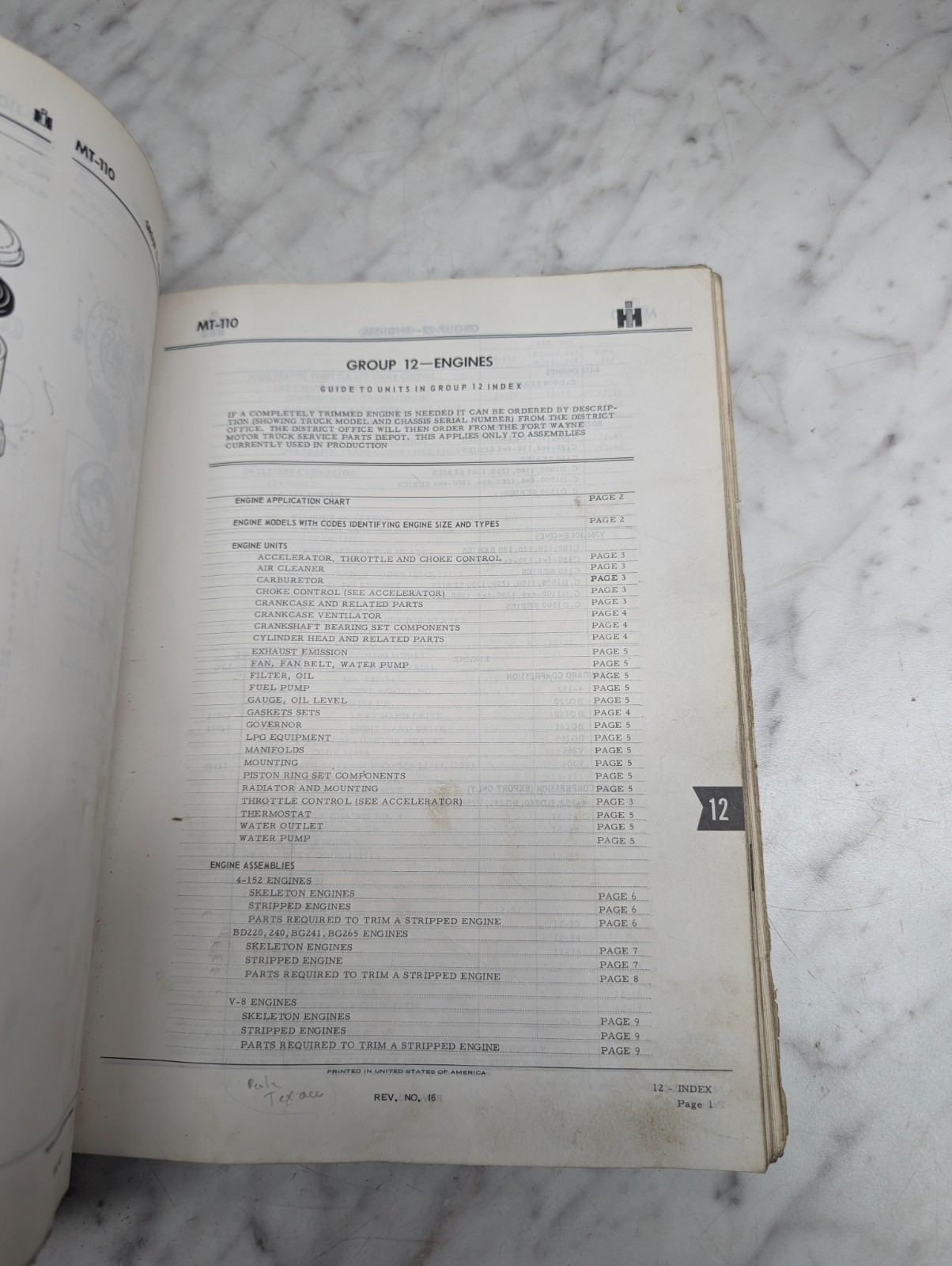 International Harvester Ih Trucks Motor Parts List Catalog Book Manual Mt-110
