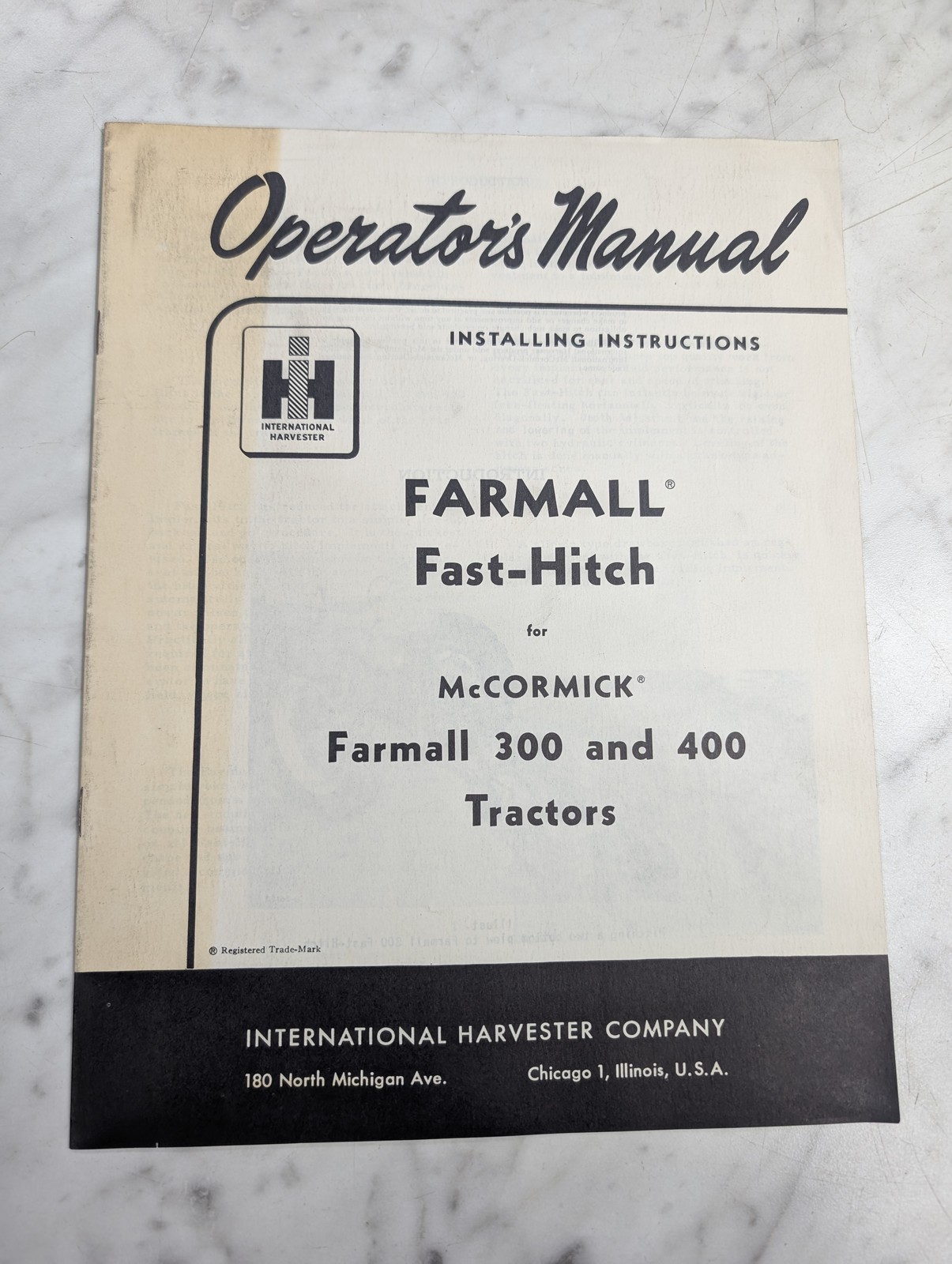 International Harvester Installation Manual Farmall Fast-Hitch 300 400 Tractor