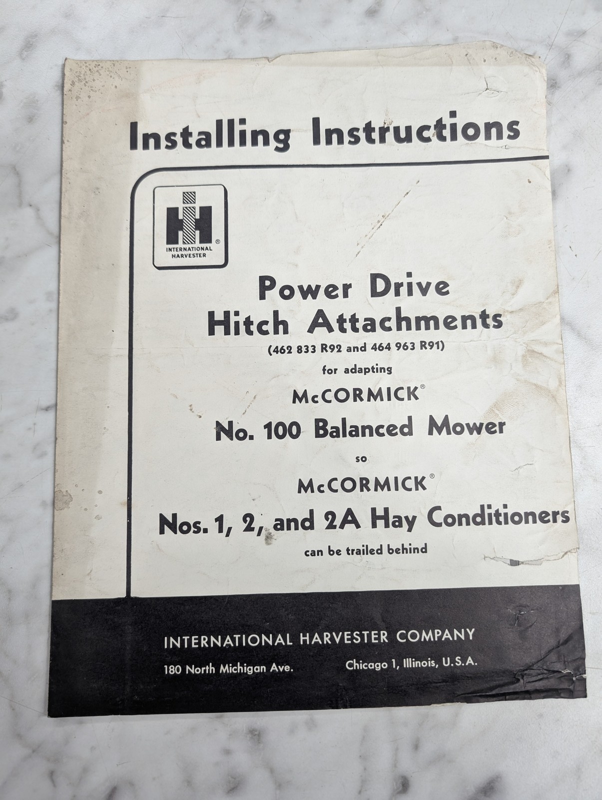 International Harvester Installing Instructions Mccormick Hitch Attachments