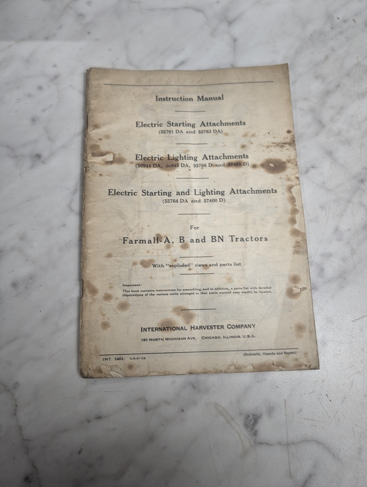 International Harvester Instruction Manual Electric Starting Attachment A B Bn