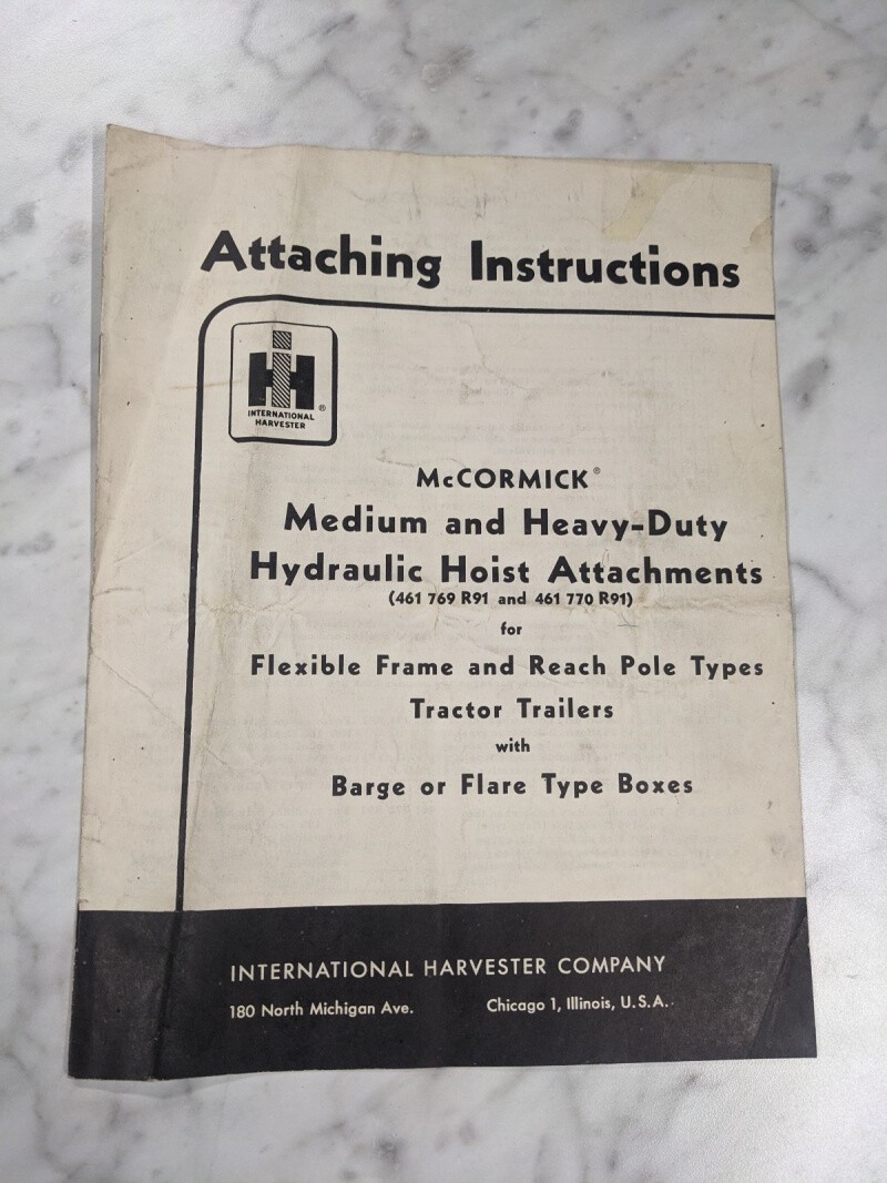 International Harvester Mccormick Attachment Manual Hoist Trailer Boxes