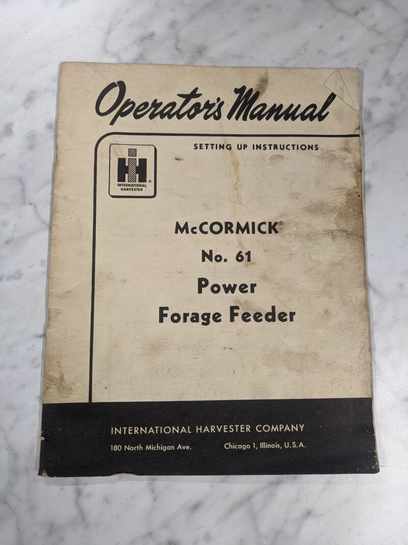International Harvester Mccormick Operator Service Manual #61 Power Feeder