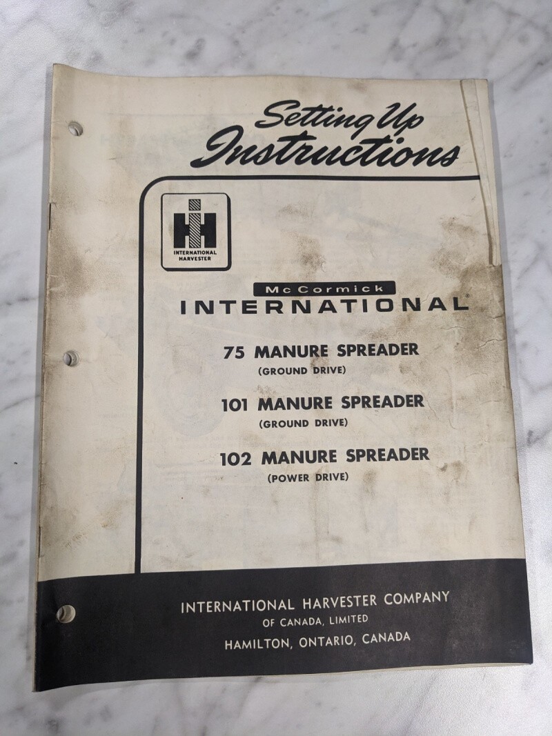 International Harvester Mccormick Operator Setup Manual 75 101 102 Spreader