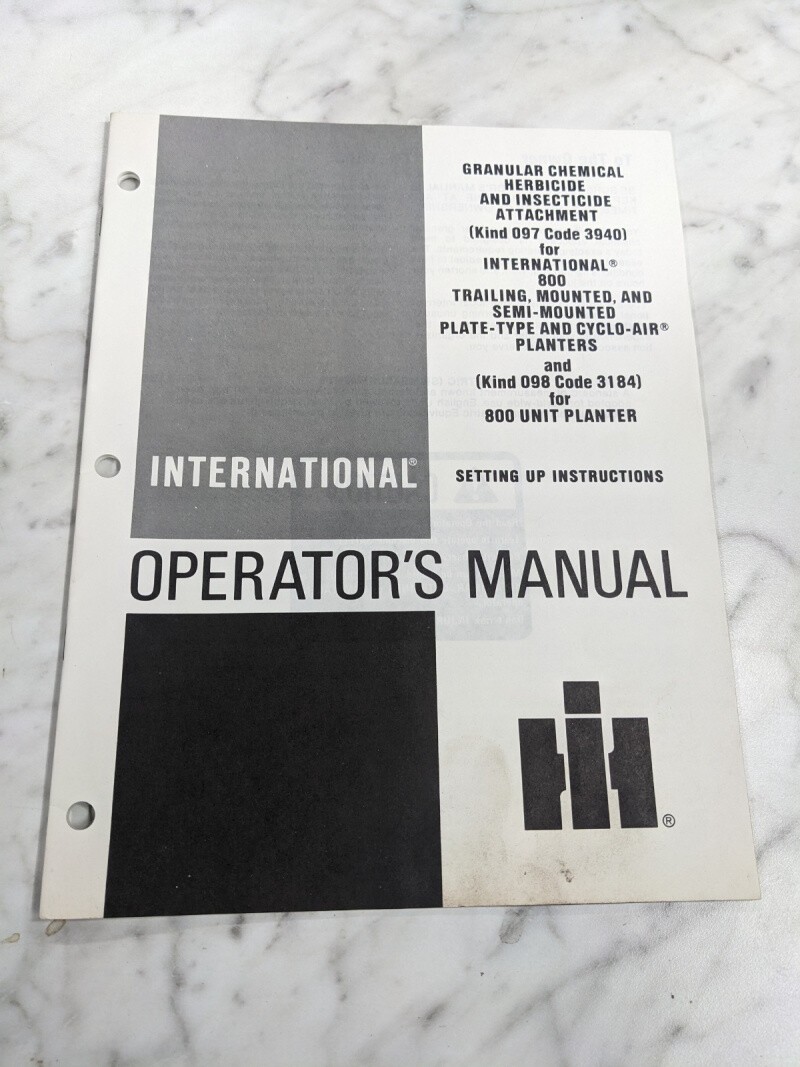 International Harvester Operator Manual Granular Chemical Attachment 800 Unit
