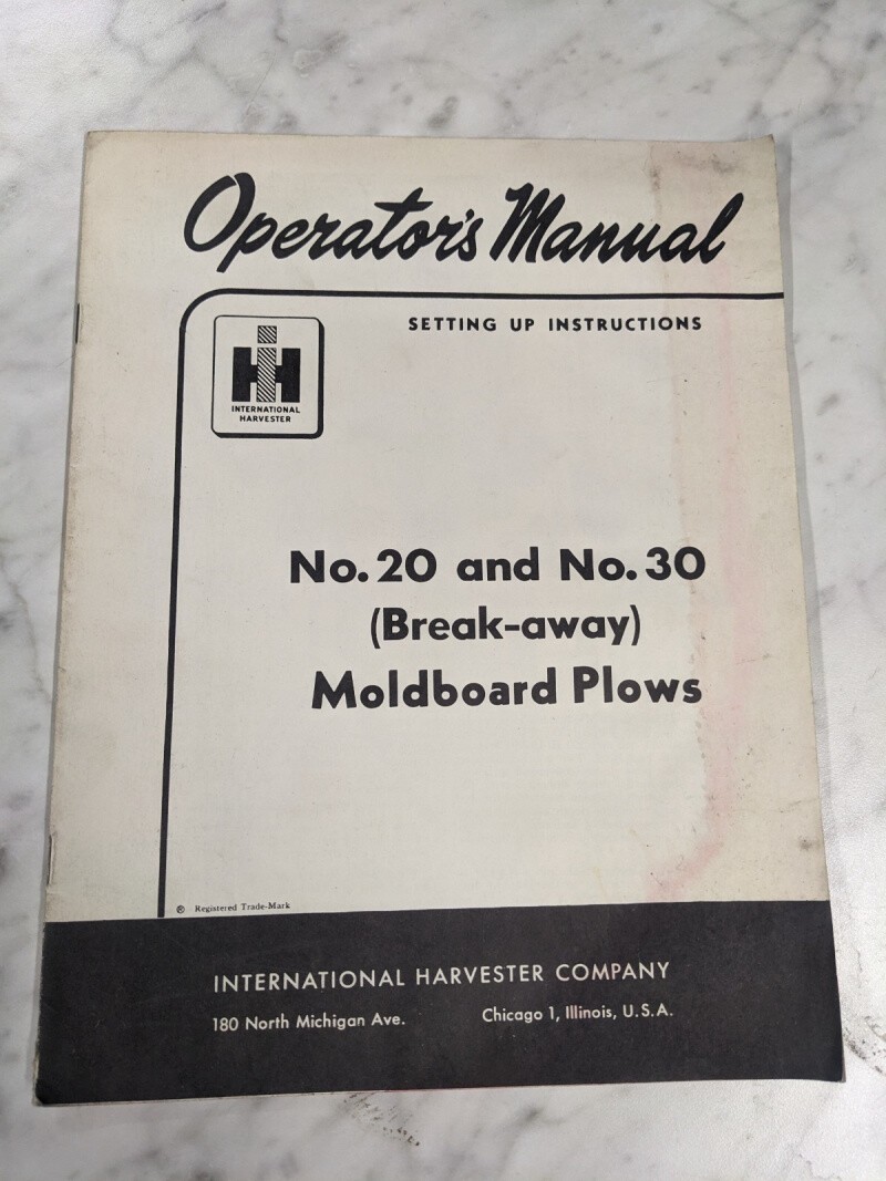 International Harvester Operator’S Service Manual #20 #30 Moldboard Plow