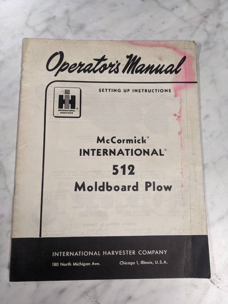 International Harvester Operator’S Service Manual Mccormick 512 Moldboard Plow
