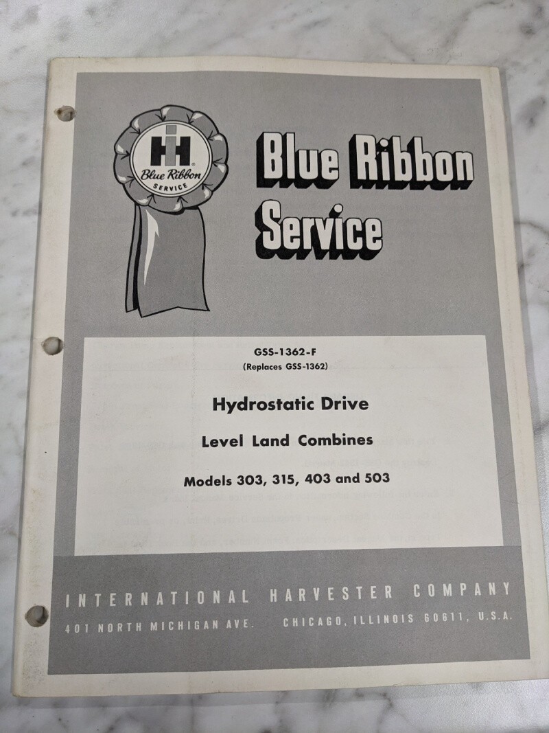 International Harvester Service Manual 303 315 403 503 Hydrostatic Drive Combine