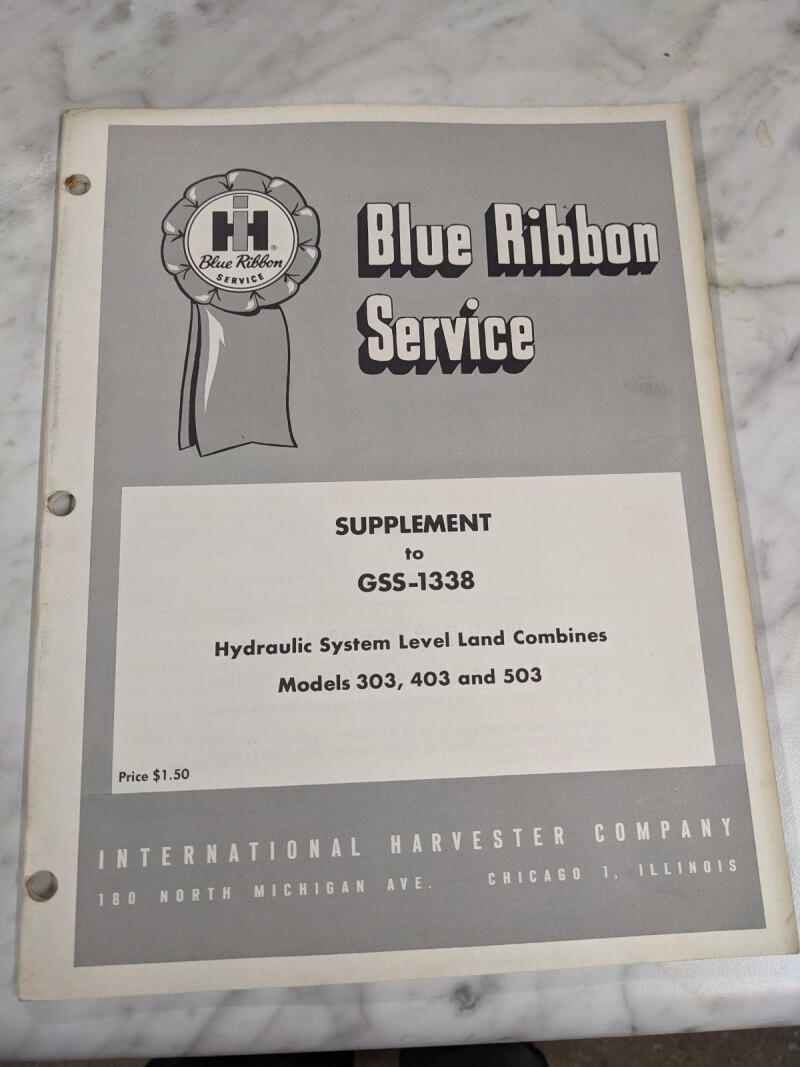 International Harvester Service Manual Supplement Gss-1338 303 403 503 Hyd Sys