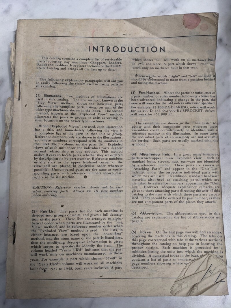 International Harvester Service Parts List Manual Catalog Hm-1 1950 Hay Machines