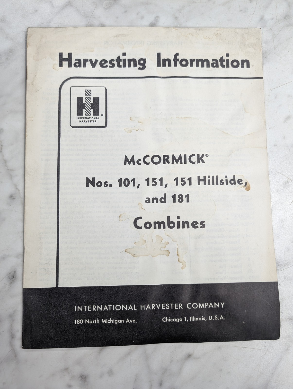 International Harvester Setup Instruction Manual Mccormick 101 151 181 Combine