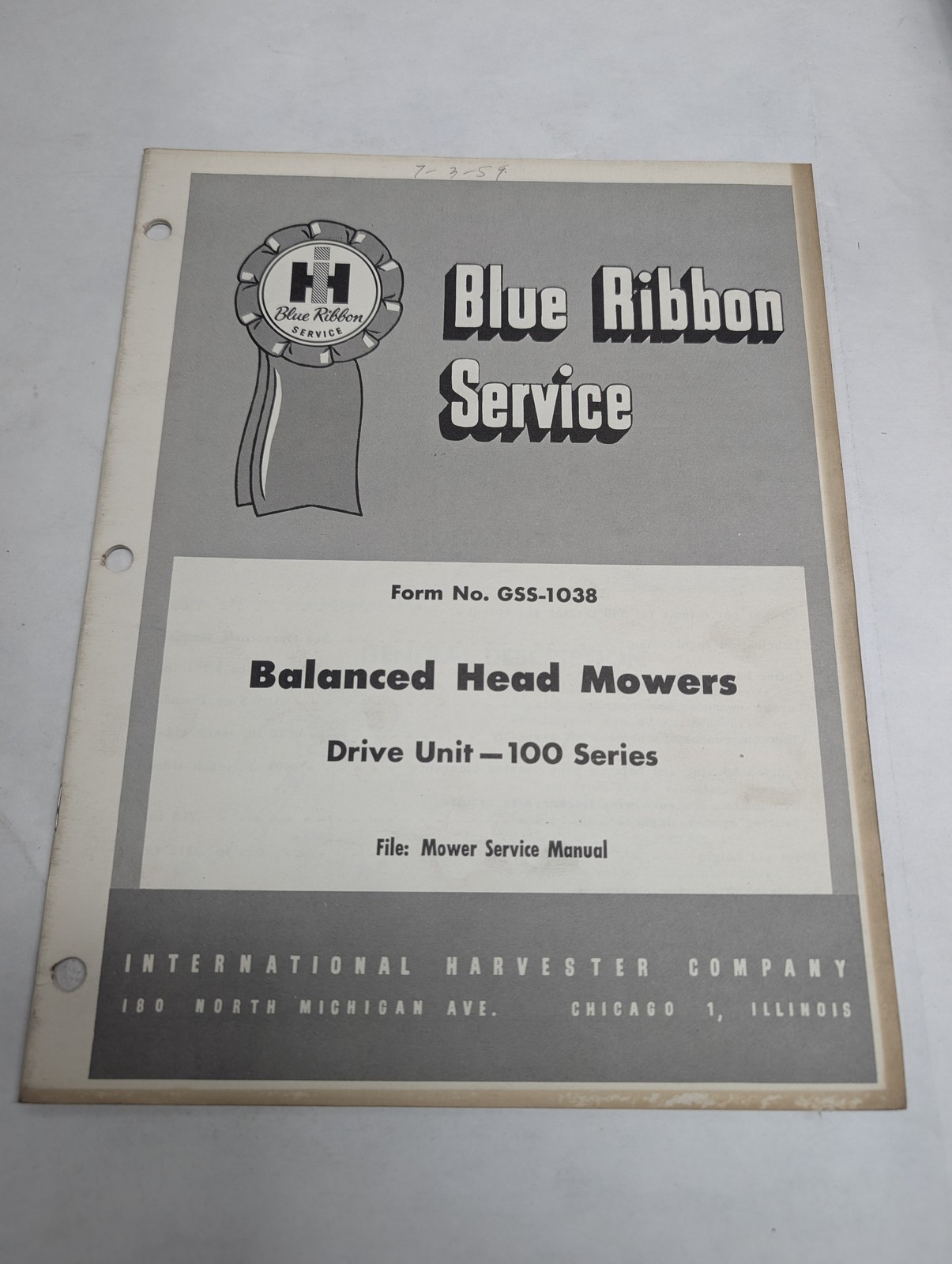 International Ih Blue Ribbon Service Manual Gss-1038 Balanced Head Mowers