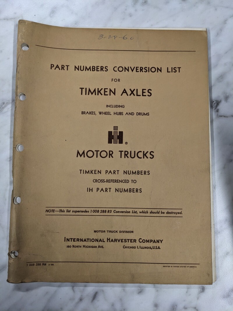 International Ih Motor Trucks Part Number Conversion List Timken Axles 1960